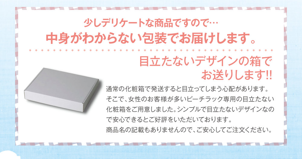 デリケートな「痔」の悩みは隠密発送で受け取れる、ピーチラックで解決してしまいましょう。
